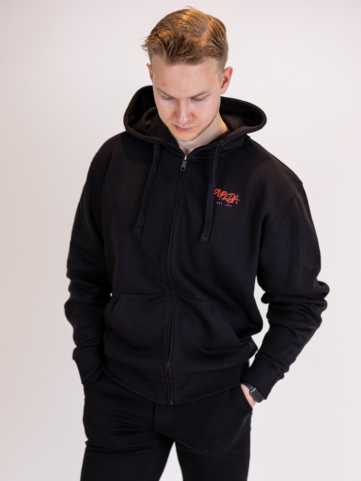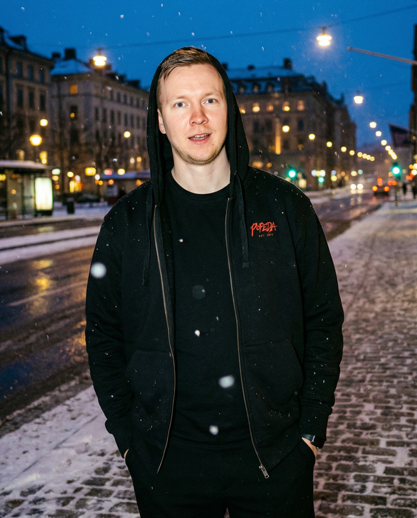 Tyylikäs ja lämmin huppari virallisella Popeda-logolla & selkäprintillä