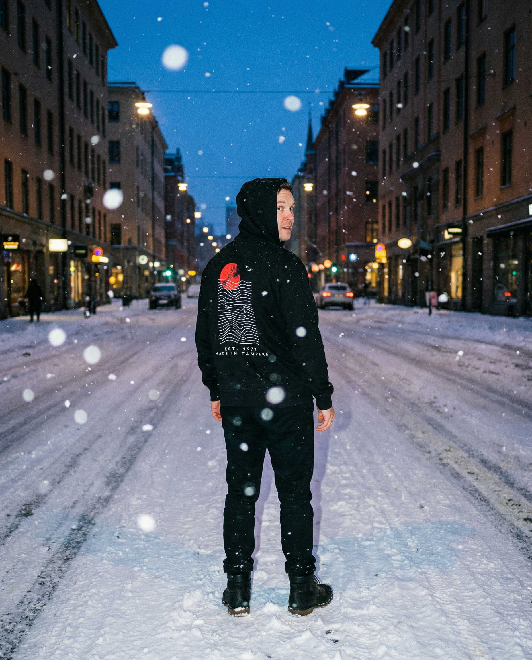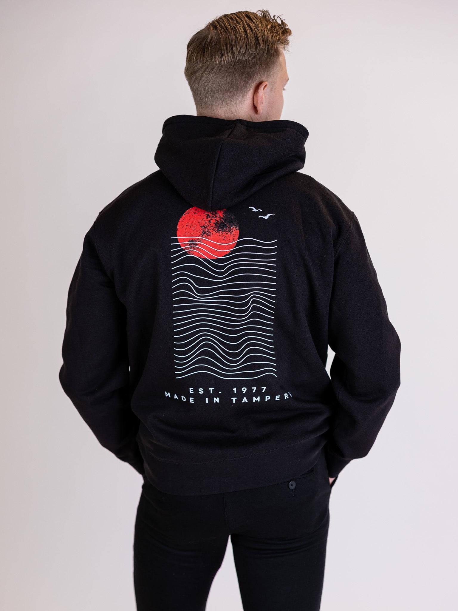 Tämä Popeda-vetoketjuhuppari yhdistää mukavuuden, laadun ja näyttävän designin. Edessä on hillitty Popeda-logo, ja selkäpuolella huomiota herättävä Blood Moon -printti, joka kuvastaa musiikin ääniaaltoja ja suomalaisen luonnon sielua – tuhansien järvien maata.